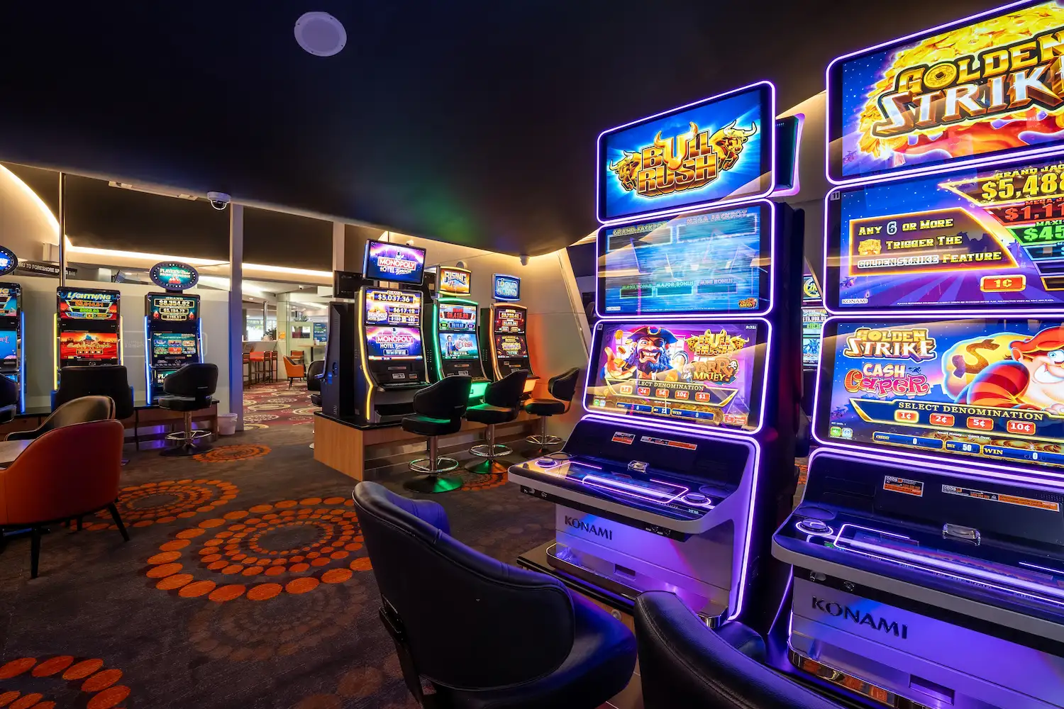Step into the excitement of our Gaming Lounge at the Foreshore Hotel, featuring 30 poker machines in a vibrant and welcoming setting. Whether you’re a casual player or visit regularly, you can enjoy a relaxed, comfortable space with friendly service and a complimentary self-serve coffee machine. There’s also an outdoor, undercover heated smoking area for comfort year-round. We support and practise Responsible Conduct of Gambling — please play responsibly.